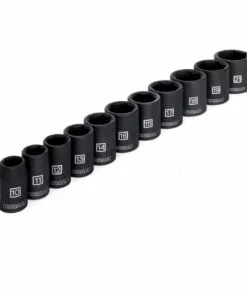 - 3/8-In drive impact socket set contains metric sizes: 10, 11, 12, 13, 14, 15, 16, 17, 18, 19 and 21 mm