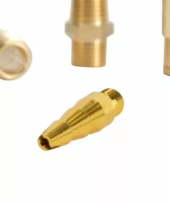 - Includes blow gun, rubber tip, tire gauge, sports ball needle, tapered tip, thread seal tape, two 1/4-in female plugs, two 1/4-in male plugs, 1/4-in female coupler, 2 quick connectors, two 1/4-in male couplers, safety nozzle, dual tire chuck and storage bag