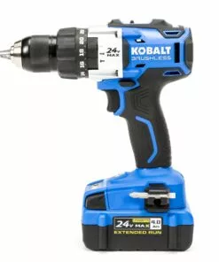 - Kobalt cordless combo kit includes 1/2-in hammer drill, 1/4-in impact driver, 24-volt Li-ion battery, double-ended driver bit, single-ended driver bit, 2 bit holders, 2 belt clips, auxiliary handle, charger and contractor bag