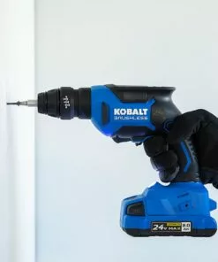 The Kobalt 24-Volt Brushless Drywall Screwgun produces 4,500 RPM, enough power to complete most drywall jobs. It features a dust-proof structure, built-in LED light, lock-on button, and tool-free depth adjustments. Use for single screws, or attach the Kobalt Screwgun Attachment, Lowe’s item #1260307 (sold separately), to use the screwgun with collated drywall screws. The tool is backed by Kobalt’s 5-year limited warranty.