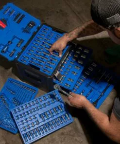 Our newest mechanic’s tool set is packaged in a 4-drawer blow-molded case with reinforced joints to help the case withstand the rigors of day to day use. The inside of the lid, top tray, and middle drawers feature special compartments that securely hold all of the tools in place. Every compartment has a stamped size call-out that indicates what tool belongs there, helping keep things highly organized. High-quality tools include a varied assortment of 1/4-in, 3/8-in and 1/2-in drive sockets, Pro90 ratchets and drive tools to help you conquer the job. We’ve added a wide assortment of other tools including standard and mini combination wrenches, a magnetic bit driver with 19 insert bits, a spinner handle, 12 nut driver bits, and 25 star-shaped and hex keys with this set. Whether you’re working on the go, in the garage, or at home, you’ll truly be able to do it all.