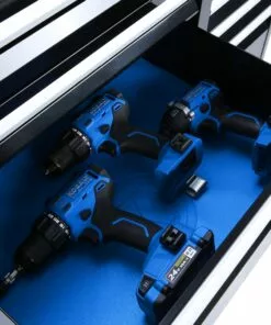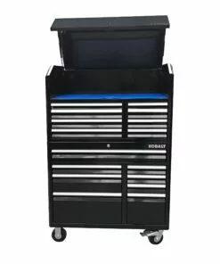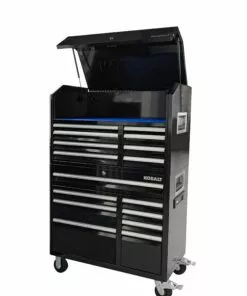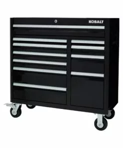 This Kobalt 3000 series heavy duty mobile cabinet is ready to serve. With over 17,000 cu inches of storage and a 2000 lb. capacity, this mobile cabinet is built to last. This cabinet has heavy duty, ball bearing drawer glides for smooth functionality when fully loaded. Couple this with their soft close feature and you don’t have to worry about the drawers opening or slamming closed when you are moving around. Coordinating custom fitted drawer liners protect your tools from scratching or rolling around. This box is built tough with double walled construction and heavy duty, industrial strength casters that can hold up to 2000 lbs and continue to roll smoothly. Integrated power supply with USB ports for charging electronics and power tools.