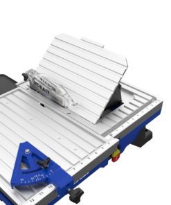 - Aluminum die cast table for durability and uniformly flat cutting surface