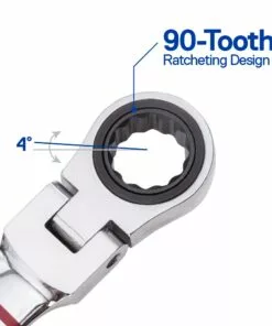 - 90-Tooth ratcheting box end provides 4ยฐ of arc swing