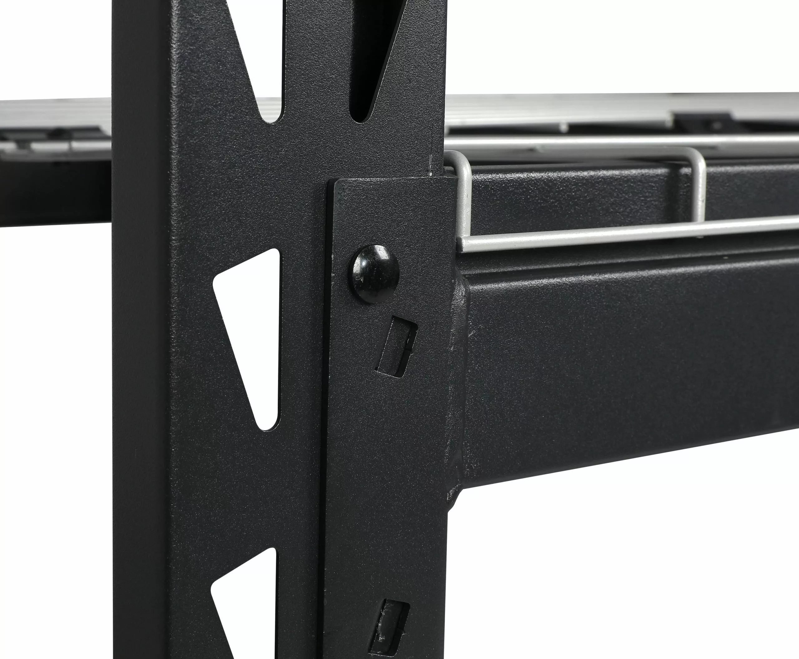- Steel locking drop pins ensure that each shelf is properly installed and add safety to the product
