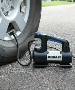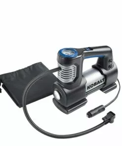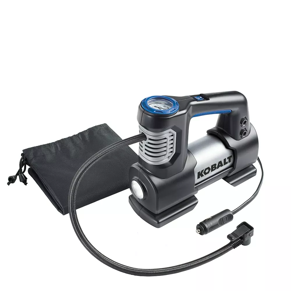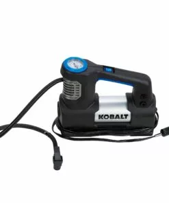 KOBALT 12 Volt air Inflator. This product is inflates vehicle tires and is easy to store in your vehicle’s trunk or storage location.