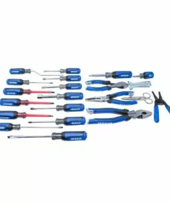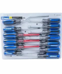 Kobalt’s huge 22-piece tool kit has all the right tools for almost any job you’ll encounter. Insulated screwdrivers provide extra protection for any fastener job. A well-crafted, versatile plier selection cuts and crimps any task. A smart selection of nut drivers make fastener tightening fast and easy. Handy electrician scissors are corrosion resistant and have precision ground blades for efficient and precise cutting. Wire stripper blades are precision ground for clean, accurate stripping. Keep your Kobalt 22-piece tool kit organized and ready to take anywhere with the durable nylon tool bag. A great value full of well-built, professional tools.
