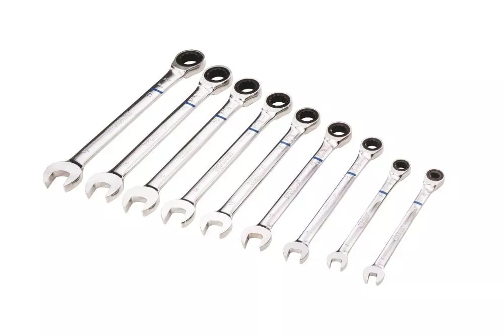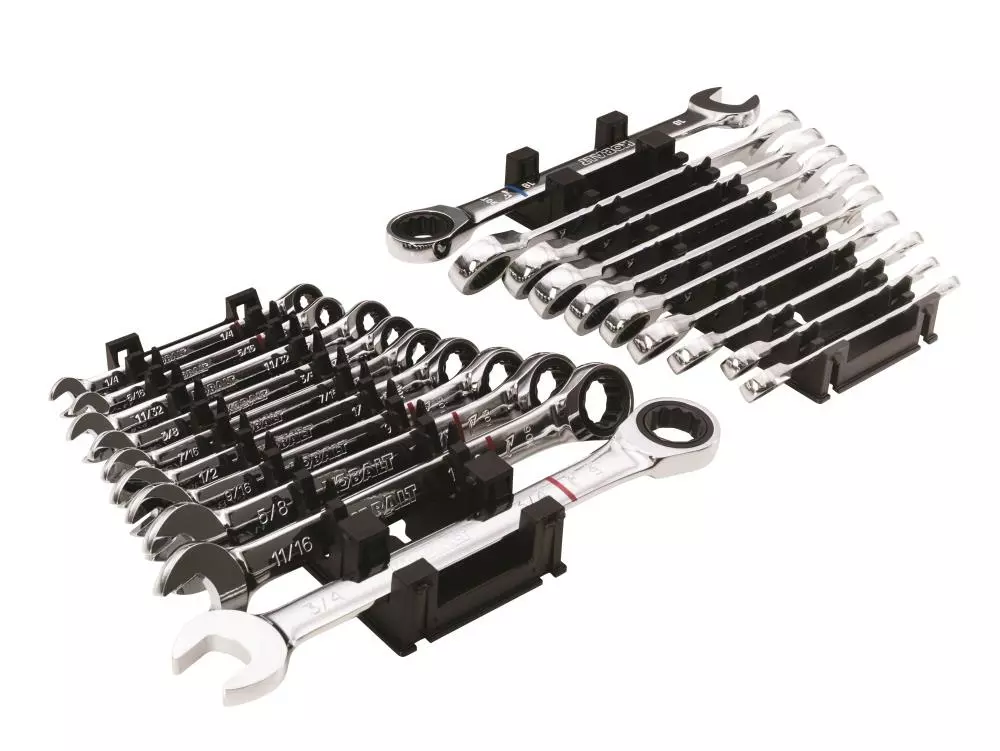 - This 20 piece ratcheting wrench set includes the following metric and SAE sizes: 6, 8, 10, 12, 13, 14, 15, 16, 17, 18 mm and 1/4, 5/16, 11/32, 3/8, 7/16, 1/2, 9/16, 5/8, 11/16 and 3/4-inch
