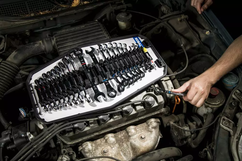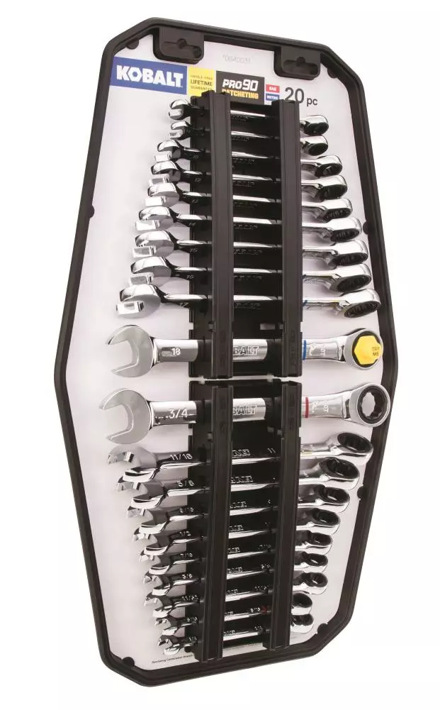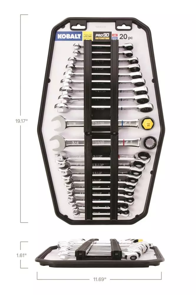 Kobalt In Tray with Removable Rails 20-Piece Set 12-Point Standard (SAE) and Metric Combination Ratchet Wrench Set – Hand Tools