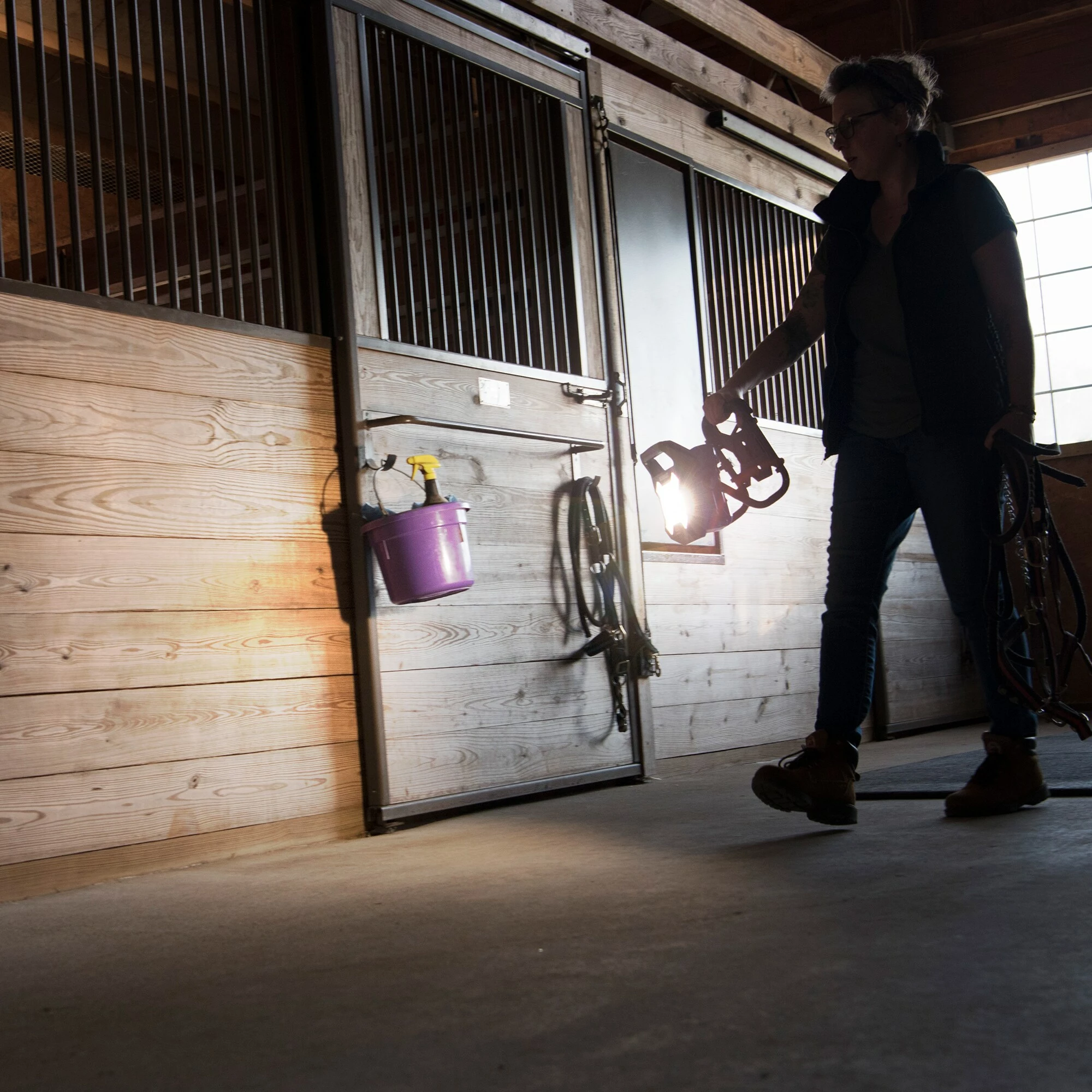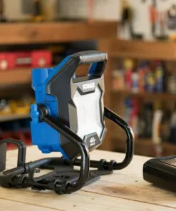 With 2500 lumens and 5K color temperature of bright white light, the Kobalt 80-volt hybrid work light is perfect for indoor and outdoor use in work spaces, garages, patios, camping and more. A fully-charged 80-volt battery provides up to 14 hours of runtime, and when the task requires longer use, it also works with a standard AC 120V electrical outlet. With a tripod-mountable base and adjustable side tensioning knobs that provide 360ยฐ rotation, light can be directed wherever it’s needed.