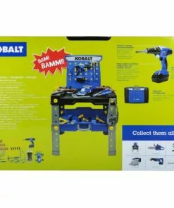 Hours of fun for your child contained in one case! Our toy Kobalt™ Work Bench and Tool Set is 54 pieces of childhood delight. Unassembled, the entire set folds into one carrying case. When assembled, your little carpenter has his own workbench and numerous accessories for hours of building and imaginative fun. This toy tool set includes a power drill with three bits, a hack saw, a hammer, a screwdriver with two exchangeable heads, a pair of pliers, a square ruler, and a take-apart race car… plus more! For ages 3 years and up. Collect all six special holiday Kobalt™ toys for a complete set!