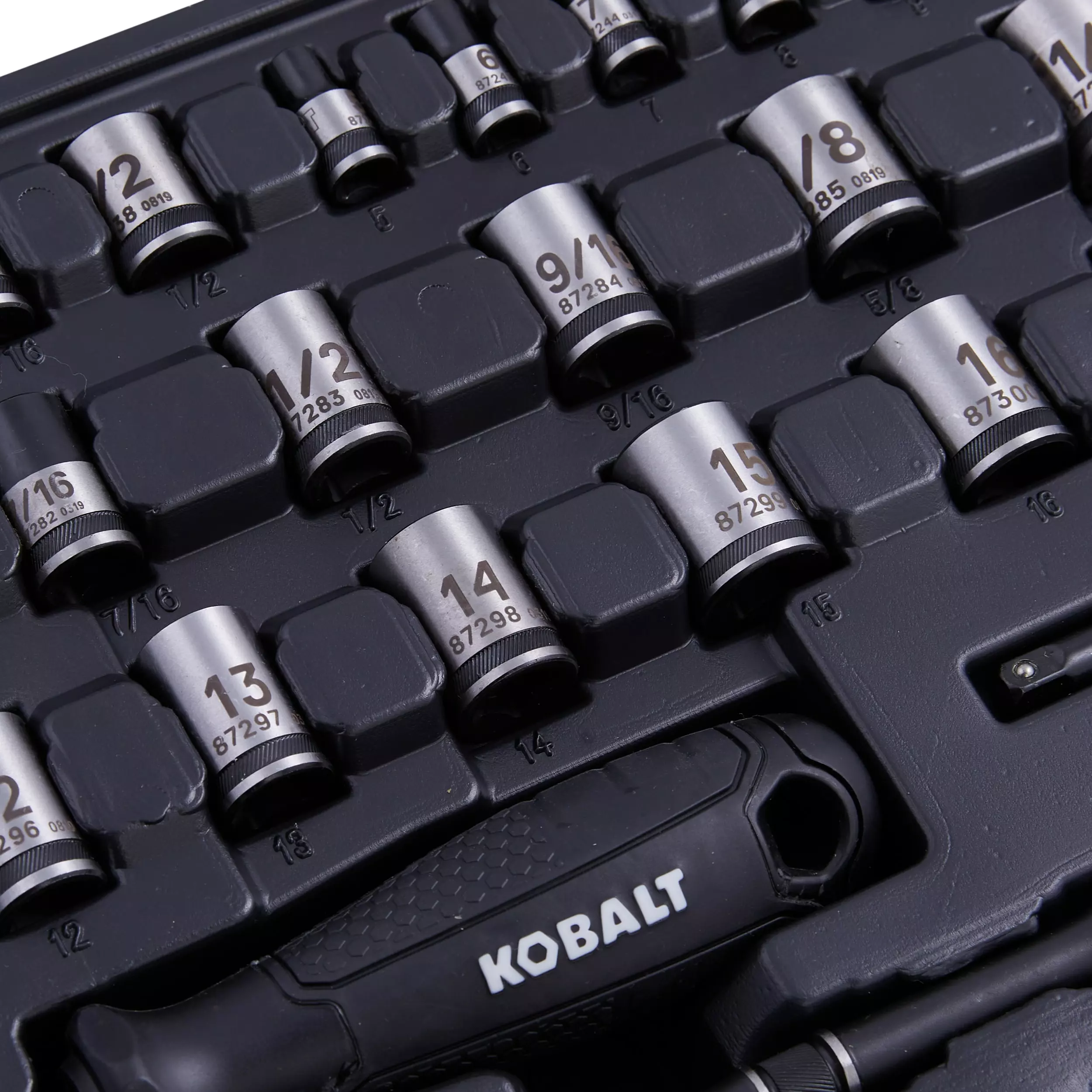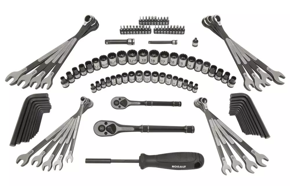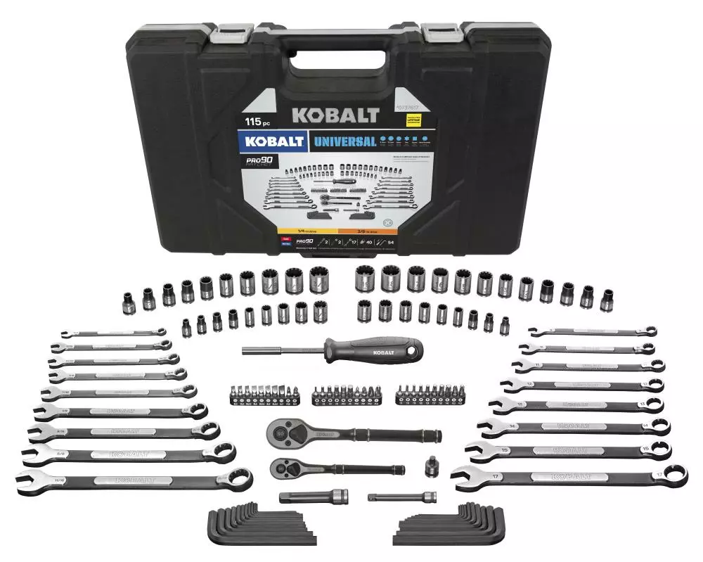 Kobalt Universal 115-Piece Standard (SAE) and Metric Combination Matte Mechanics Tool Set (1/4-in; 3/8-in) – Hand Tools