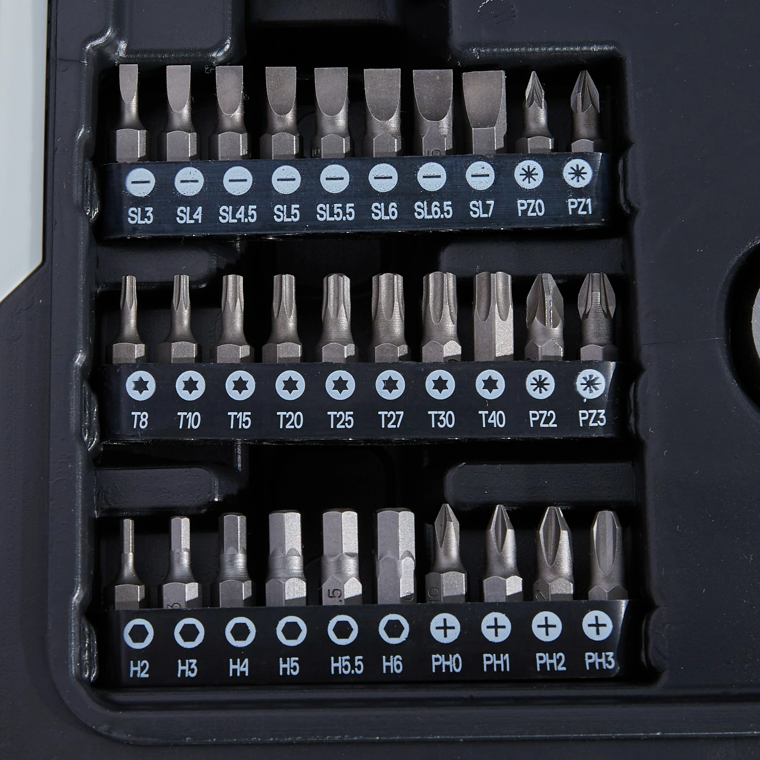 - This 1/4-in and 3/8-in drive set contains 40 metric and SAE shallow Universal sockets, 17 metric and SAE Universal combination wrenches, 2 extensions, a 3/8 x 1/4-in adapter, 1 drive handle, 22 hex keys, 30 insert bits, 2 72-tooth quick release ratchets