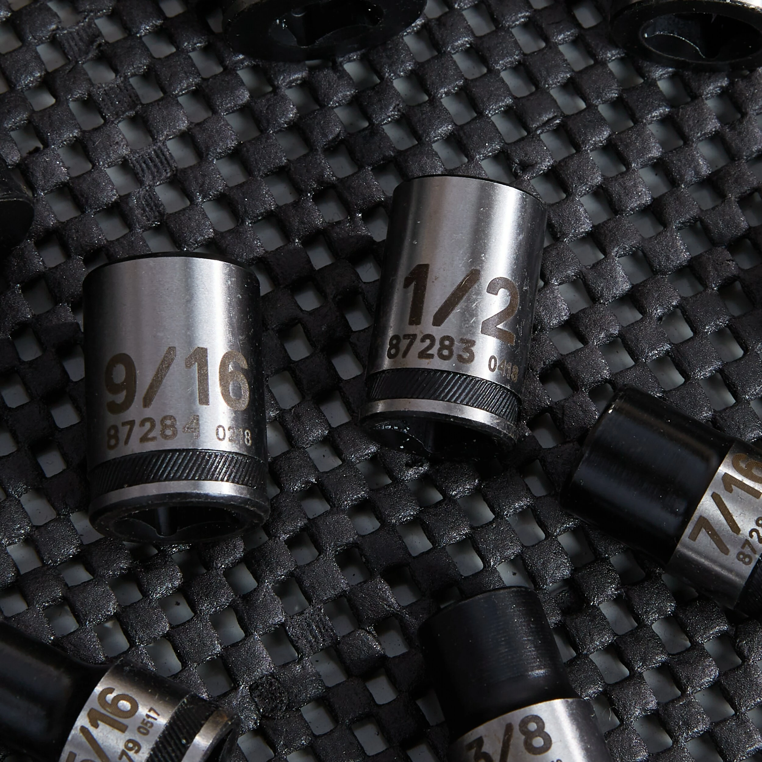 - 3/8-In drive Universal socket set contains SAE sizes 1/4, 5/16, 3/8, 7/16, 1/2, 9/16, 5/8, 11/16 and 3/4-inch