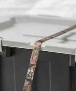 - Strap indicators on the lid can make tying down the storage bin more secure